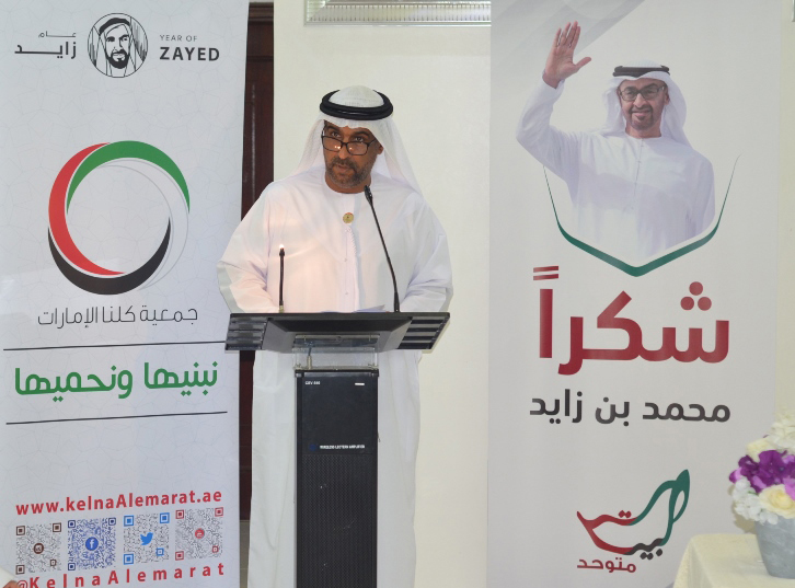 وتوجه بالشكر والتقدير إلى القيادة الرشيدة على اهتمامها بالمواطن وتوفير كافة أساليب العيش الكريم له.. كما توجه بالشكر إلى جمعية كلنا الإمارات على دورها الوطني والاجتماعي والثقافي.